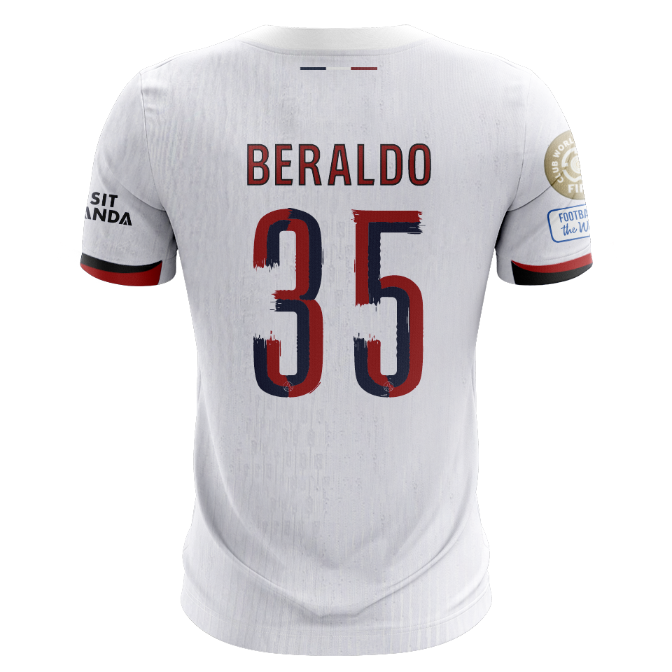 Camisola FC Paris Saint-Germain 2025-26 Alternativa Branca CWC Versão Adepto BERALDO #35