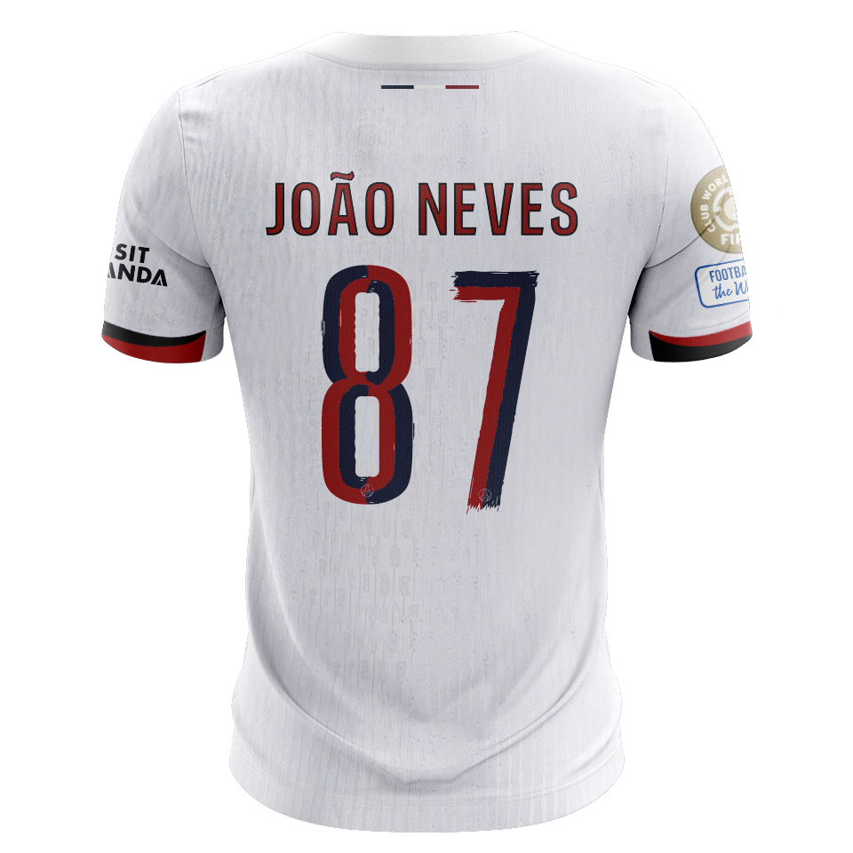 Camisola FC Paris Saint-Germain 2025-26 Alternativa Branca CWC Versão Adepto JOÃO NEVES #87